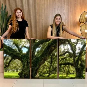 Na opção Canvas, com borda infinita ou moldura, as artes são impressas em tecido e esticadas em chassi de madeira, sem uso de vidro frontal.