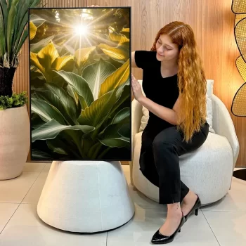 Na opção Canvas, com borda infinita ou moldura, as artes são impressas em tecido e esticadas em chassi de madeira, sem uso de vidro frontal.
