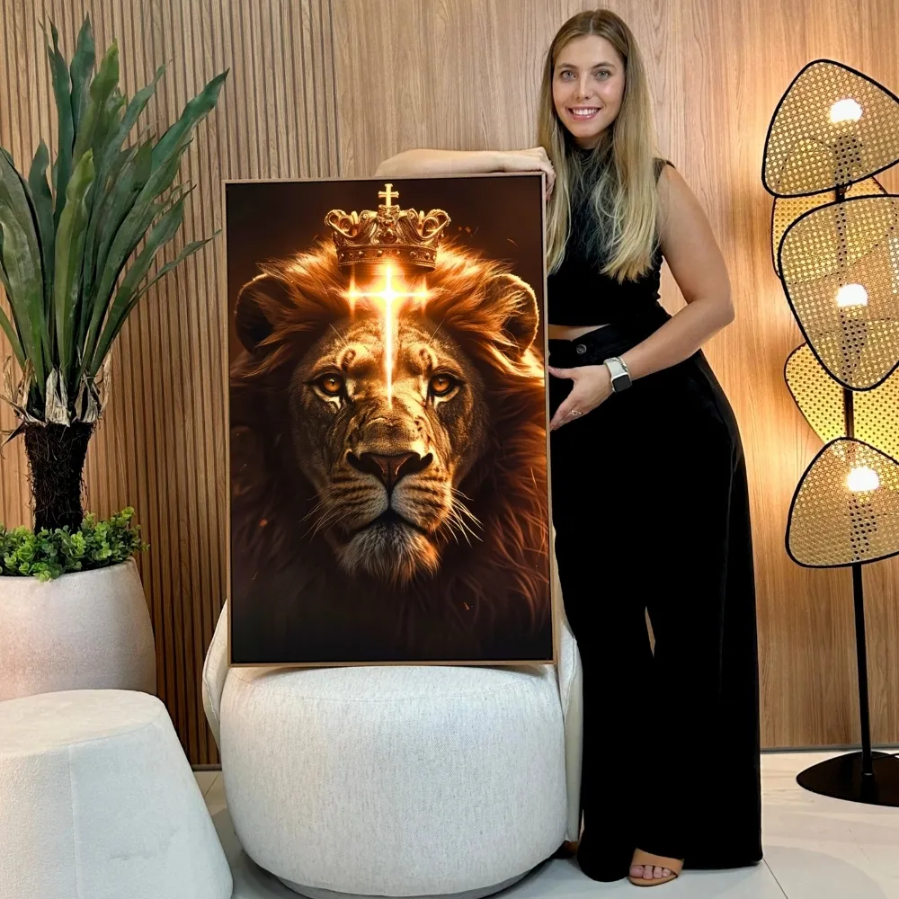 Quadro Decorativo Leão De Judá Com Cruz